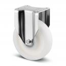Bockrolle, Gabel aus schwerem Stahlblech, verstärkt, glanzverzinkt, blaupassiviert, Radachse verschraubt, Plattenbefestigung. Radkörper aus Polyamid, schwere Ausführung, Präzisionskugellager