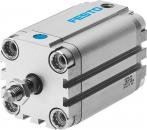 Kompaktzylinder AEVU-100-10-A-P-A für Positionserkennung. Kolbenstangenende mit Außengewinde. Hub=10 mm, Kolben-Durchmesser=100 mm, Dämpfung=P: elastische Dämpfungsringe/-platten beidseitig, Einbaulage=beliebig, Funktionsweise=(* einfachwirkend, * drückend)