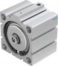 Kurzhubzylinder AEVC-80-25-I-P-A für Positionserkennung. Kolbenstangenende mit Innengewinde. Hub=25 mm, Kolben-Durchmesser=80 mm, Federrückstellkraft bei eingefahrener Kolbenstange=85 N, Basierend auf Norm=(* ISO 6431, * Lochbild, * VDMA 24562), Dämpfung=P: elastische Dämpfungsringe/-platten beidseitig