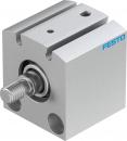 Kurzhubzylinder AEVC-25-5-A-P-A für Positionserkennung. Kolbenstangenende mit Außengewinde. Hub=5 mm, Kolben-Durchmesser=25 mm, Federrückstellkraft bei eingefahrener Kolbenstange=15 N, Dämpfung=P: elastische Dämpfungsringe/-platten beidseitig, Einbaulage=beliebig