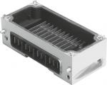 Verkettungsblock CPX-M-GE-EV für modulares elektrisches Terminal CPX. Korrosionsbeständigkeitsklasse KBK=0 - keine Korrosionsbeanspruchung, Produktgewicht=169 g, Befestigungsart=Schrägverschraubung, Werkstoffhinweis=RoHS konform, Werkstoff Gehäuse=Aluminium-Druckguss