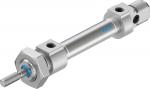 ISO cylinder DSNU-8-15-P-A Based on DIN ISO 6432, for proximity sensing. Various mounting options, with or without additional mounting components. With elastic cushioning rings in the end positions. Stroke=15 mm, Piston diameter=8 mm, Piston rod thread=M4, Cushioning=P: Flexible cushioning rings/plates at both ends, Assembly position=Any